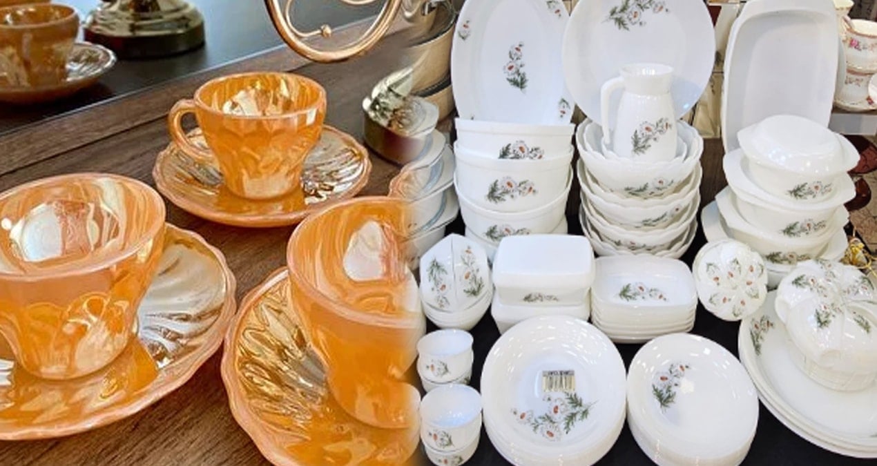 1970’li yıllarda üretilmiş çiçek desenli opal cam mutfak takımları, 2026 yılında ikinci el pazarında en değerli nesnelerden...